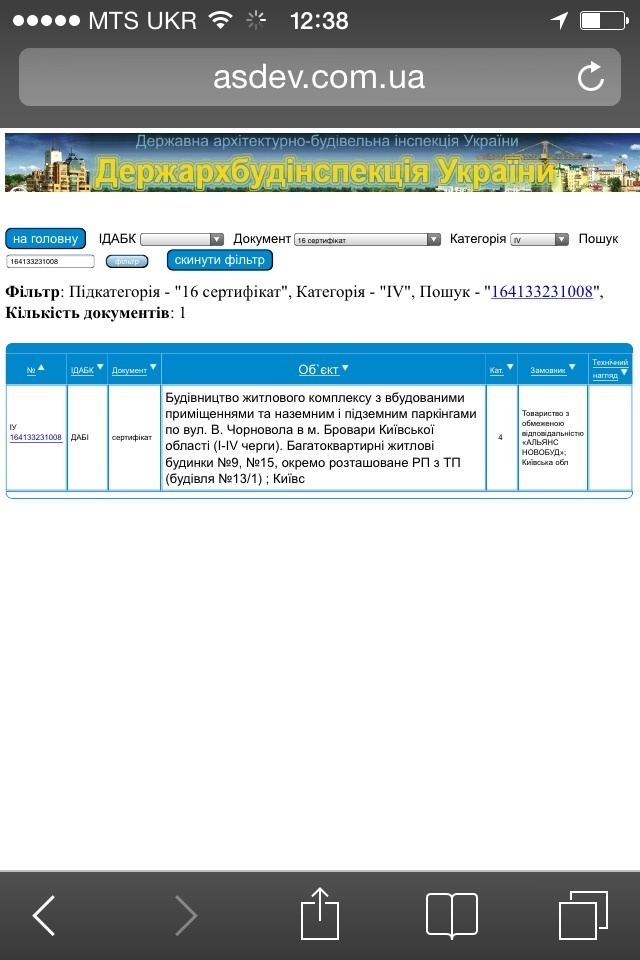По последним запросам в орган "ДЕРЖАВНА АРХІТЕКТУРНО-БУДІВЕЛЬНА ІНСПЕКЦІЯ УКРАЇНИ" такого сертификата о вводе в эксплуатацию – серия IУ №164133231008 - НЕТ! Каждый может позвонить и уточнить, вот номер: 044 291-69-05