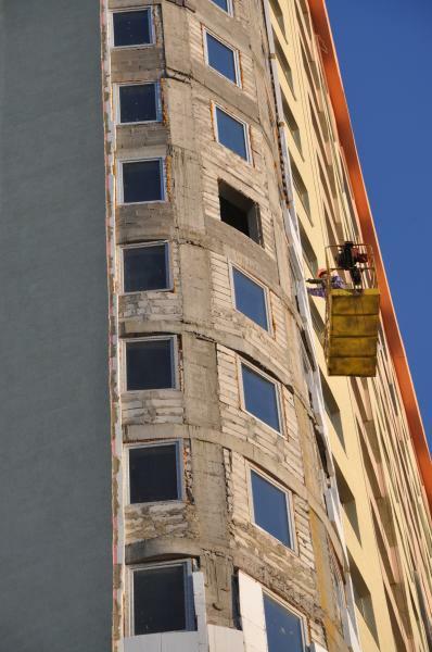 Ведутся работы по кладке наружных стен 24-го этажа.