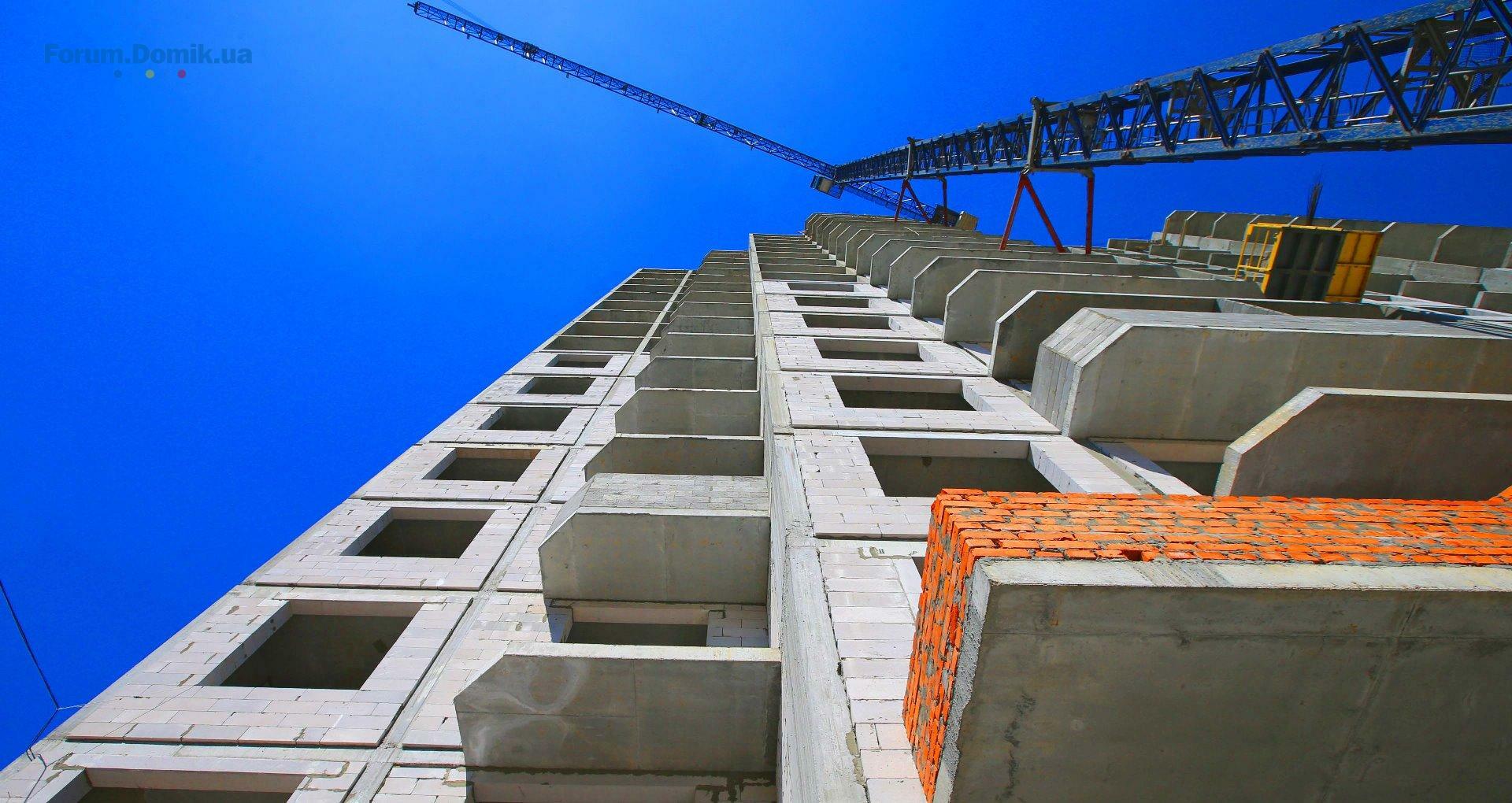 У секціях №2 та №3 завершено зведення монолітного каркасу. Виконується стінове заповнення на рівні 8-го поверху.