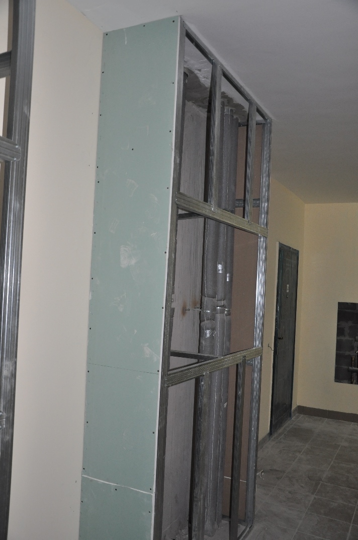 Ведутся сантехнические роботы (прокладка труб отопления водоподводов по квартирах в секции «А») с 2 по 6 эт.