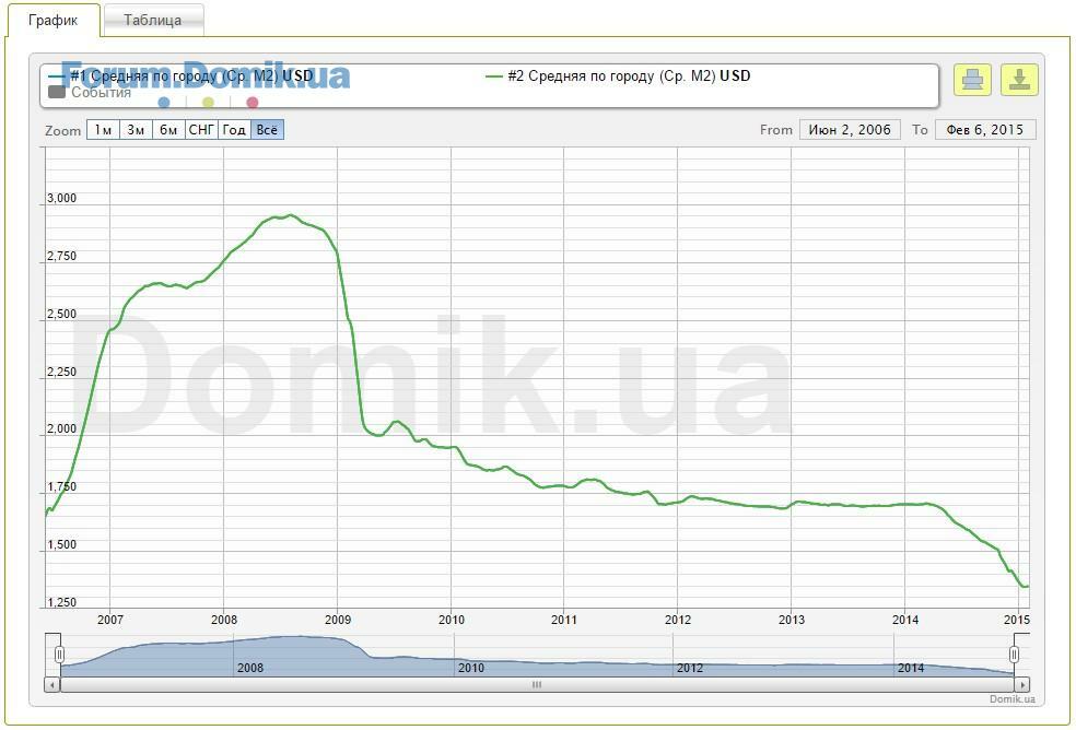 - начало июля 2015 - публикация данных о средней стоимости м2 в Киеве