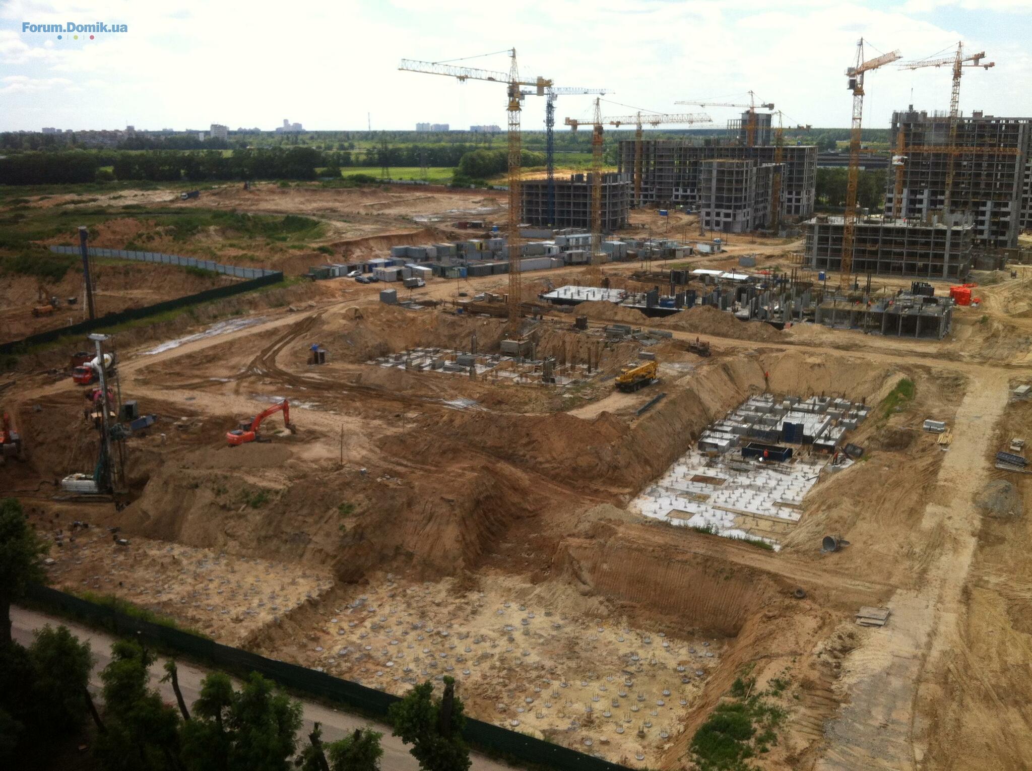 4-я очередь: дом А - готовы сваи, дом В - заливается фундамент, дом С - фундамент готов