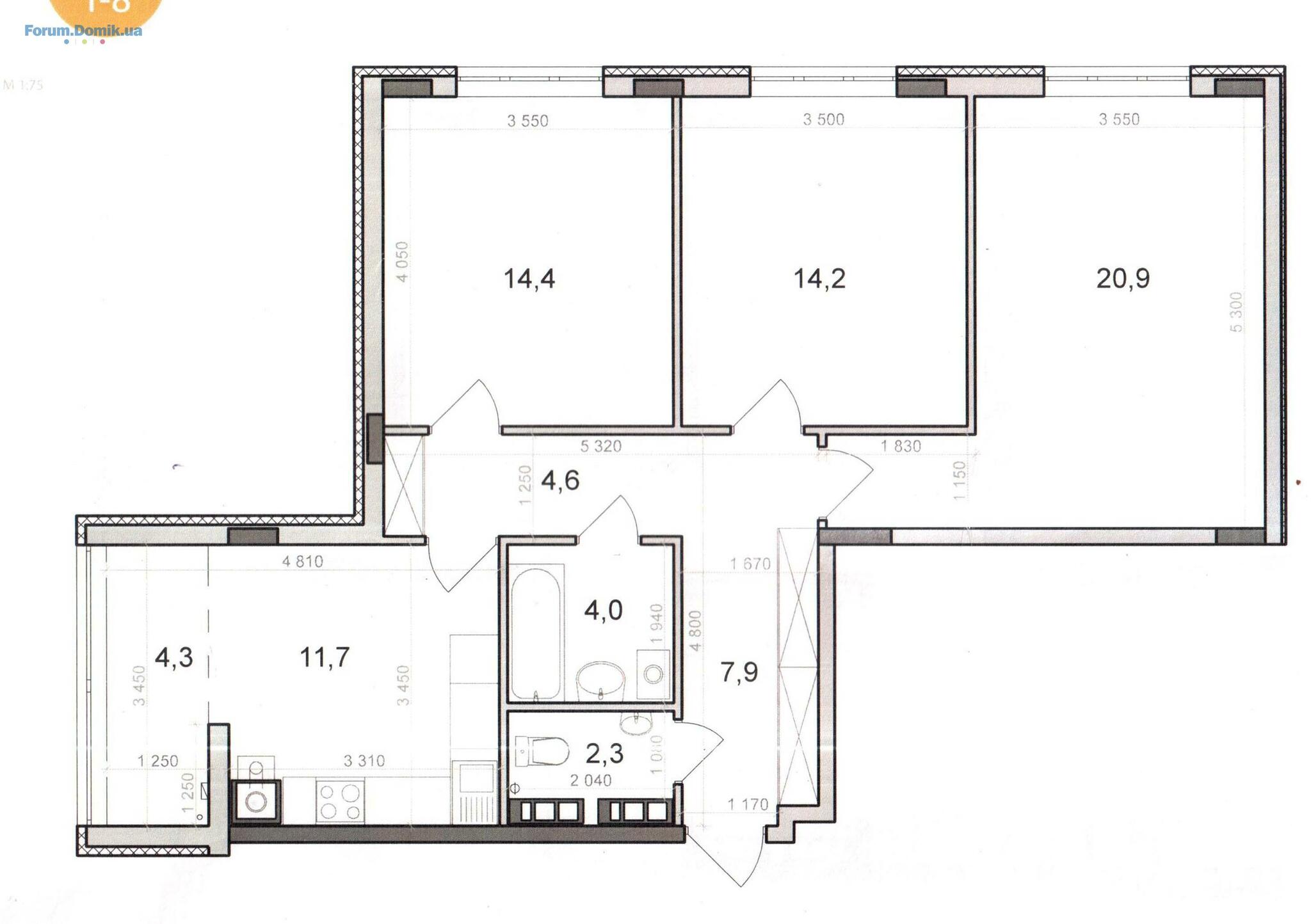 З.Ы. площади туалета и ванны будут соответствовать нормам (1,2 и 3,3 соответственно)