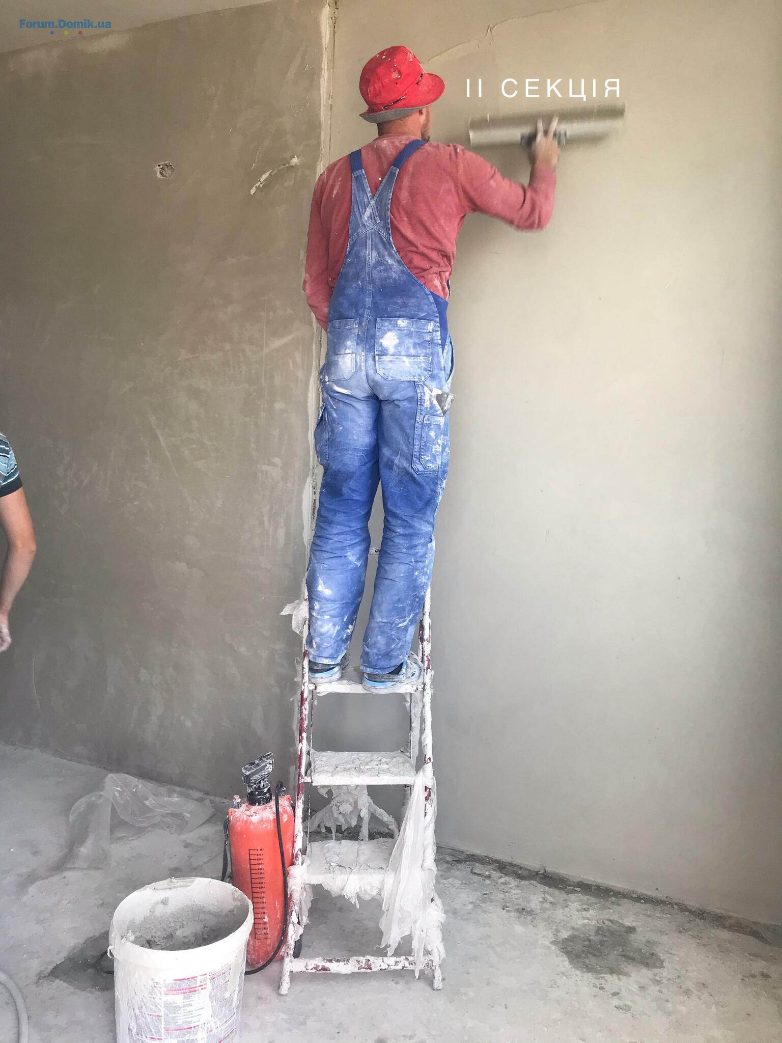 виконується штукатурка стін в місцях загального користування в ІІ-ІІІ секціях;