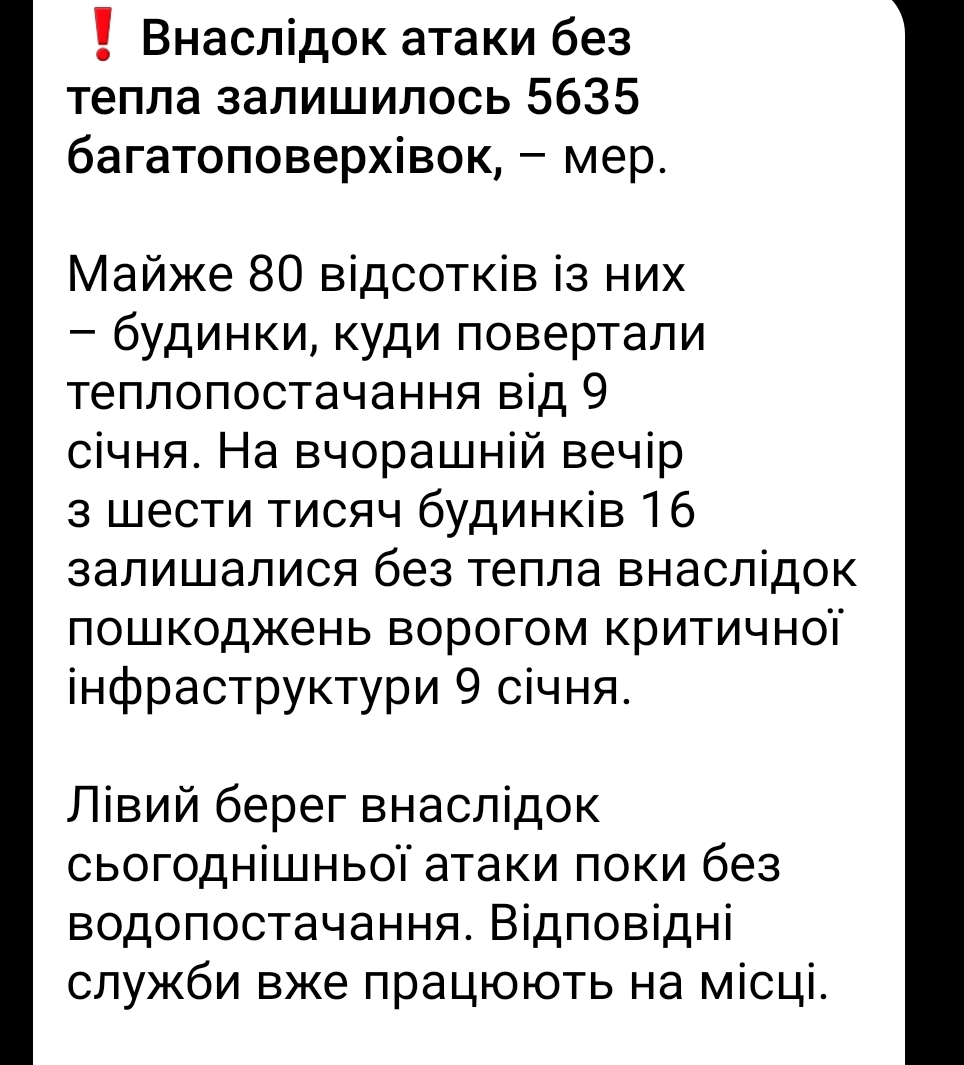 Джасамба знову підтвердив себе 🤡. "Нє будут банбіть, клічко все парємантіравал, очєрєді і аукциони"...Розматали знову, морози будуть до кінця січня, через деякий час знову навалять.Як ми бачимо,що шахедів запускають 200+-, хоча мають можливість більше одразу. Це говорить про планове інтервальне атакування. Тому є думка,що до наступної атаки приєднається стратегічна авіація+ кинджали. Нє будет даражать)