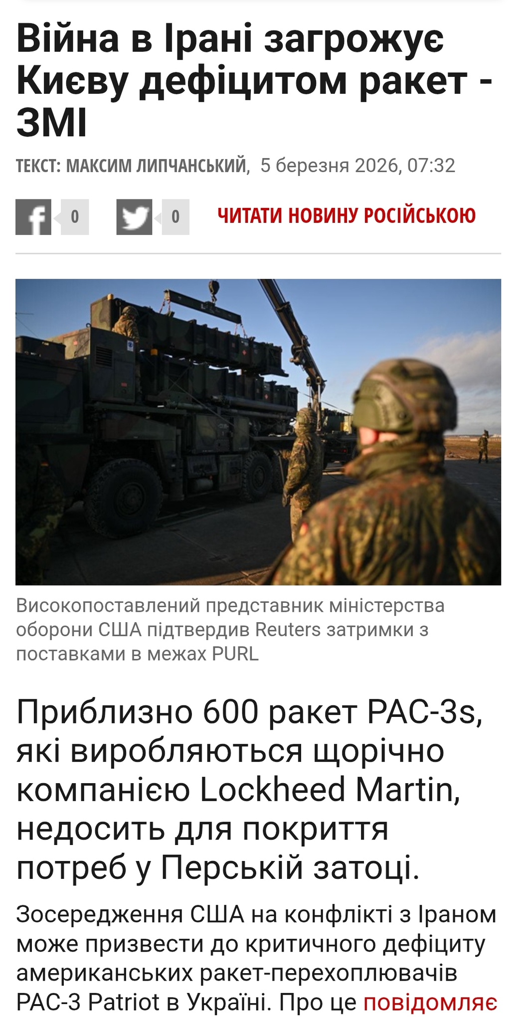 Нажаль світовий дефіцит PAC-3 вплине на можливість Києва збивати балістику, до того ще й погрози "немитих" вийти з переговорного процесу ... Зима прийде знову "зненацька" , а опалювальний сезон не буде готовий. Будєт толька даражать, но праблєма, пакупать не хатят!