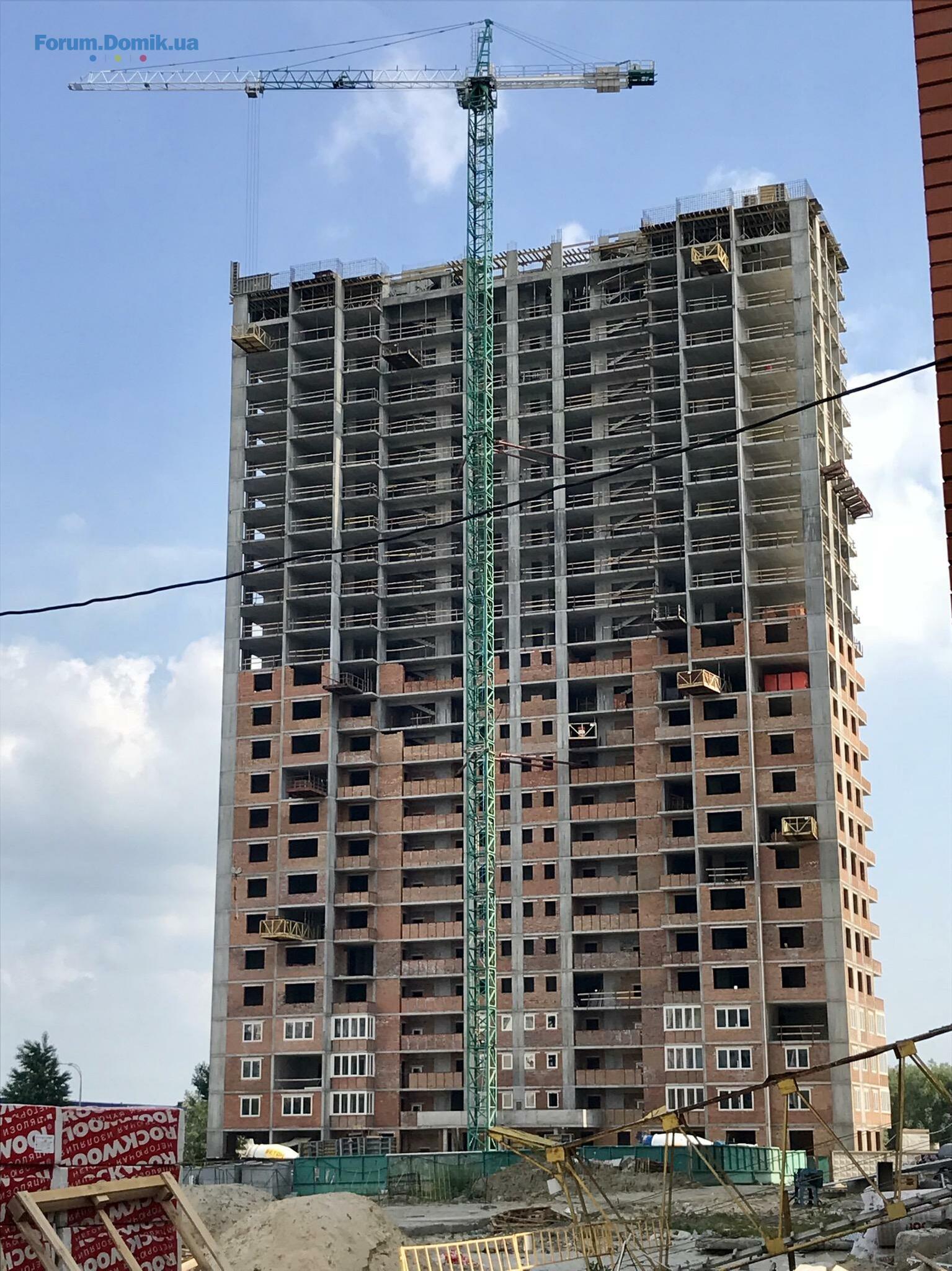 Если брать за пример монолитный дом № 27 Збараж, то на момент установки парапета на крыше кирпичная кладка его стен была на уровне 24 этажа, прилагаю фотоотчет Аркады по данному дому.