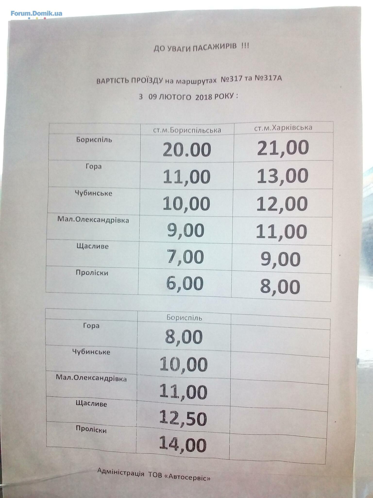 После подорожания проезд на 317 от метро Харьковская 9 грн, от метро Бориспольская 7 грн.