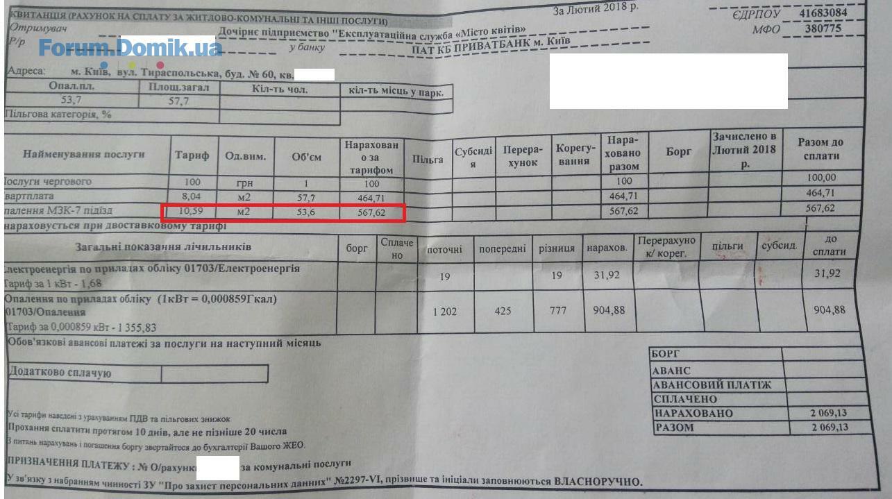 Хоч ви все і закреслили, але по вашій квитанції одразу видно , що ви з моноліта, 1 під'їзд. Бо по кожному під'їзду тариф за МЗК різний. В вашому найбільший. Об 11 понеділка ми збираємось нести до ЖЕКу скаргу. Якщо є можливість, приєднуйтесь.