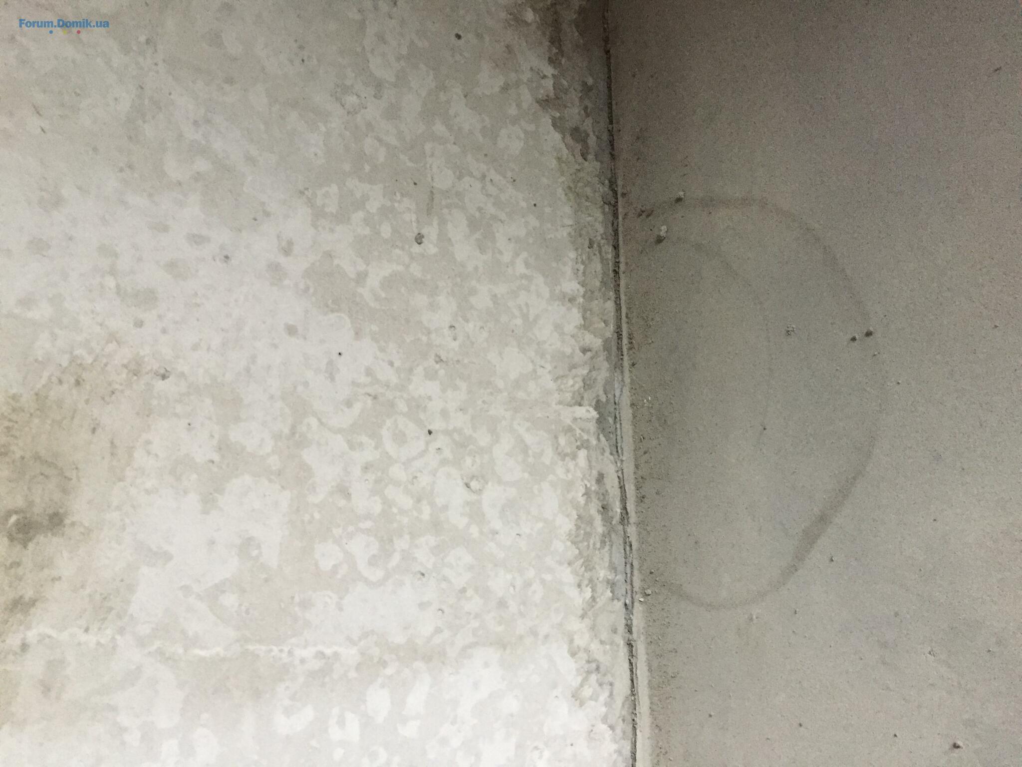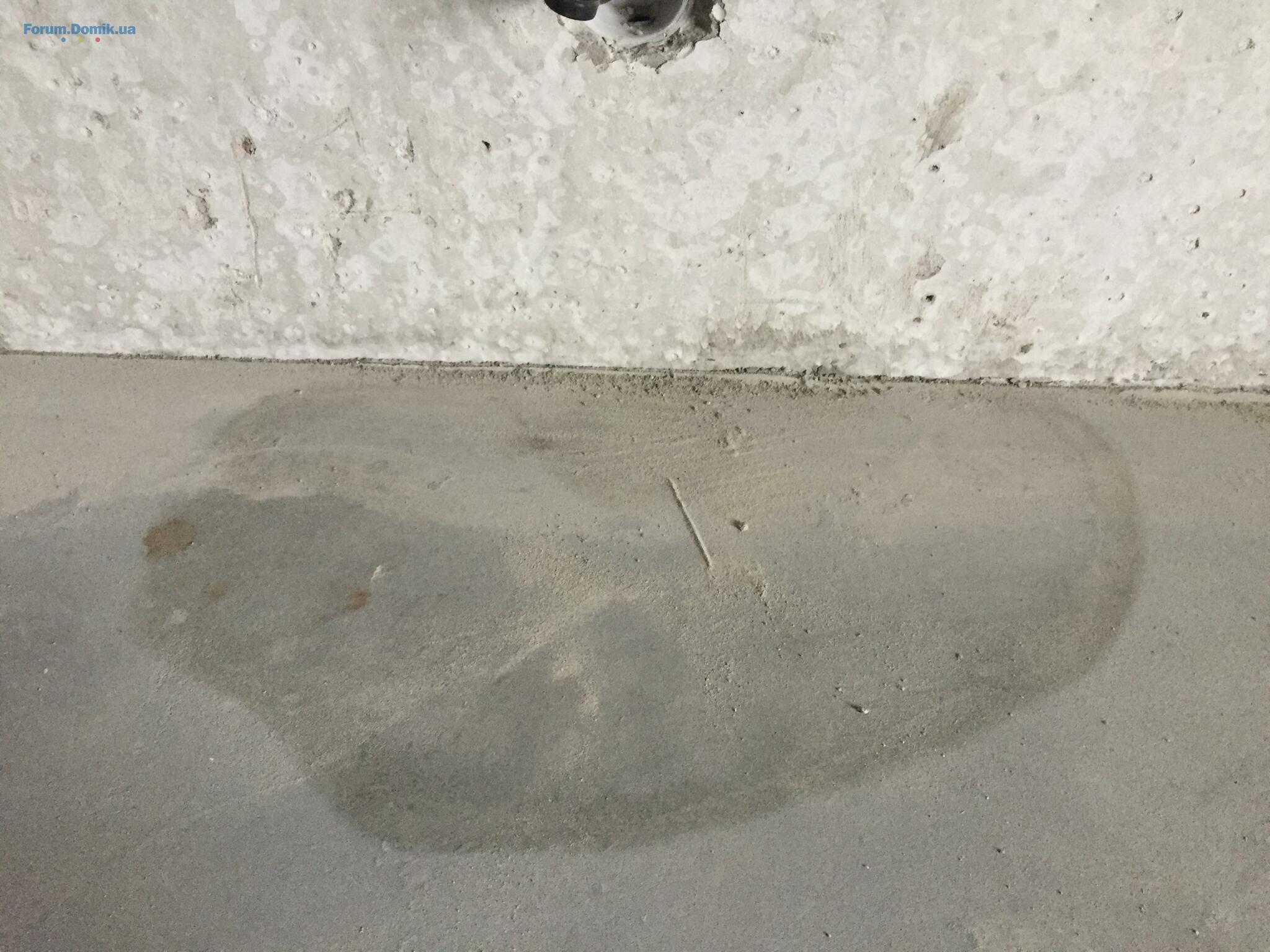 Стык стены со стяжкой вроде нормальный. А что на потолке над мокрыми пятнами?
