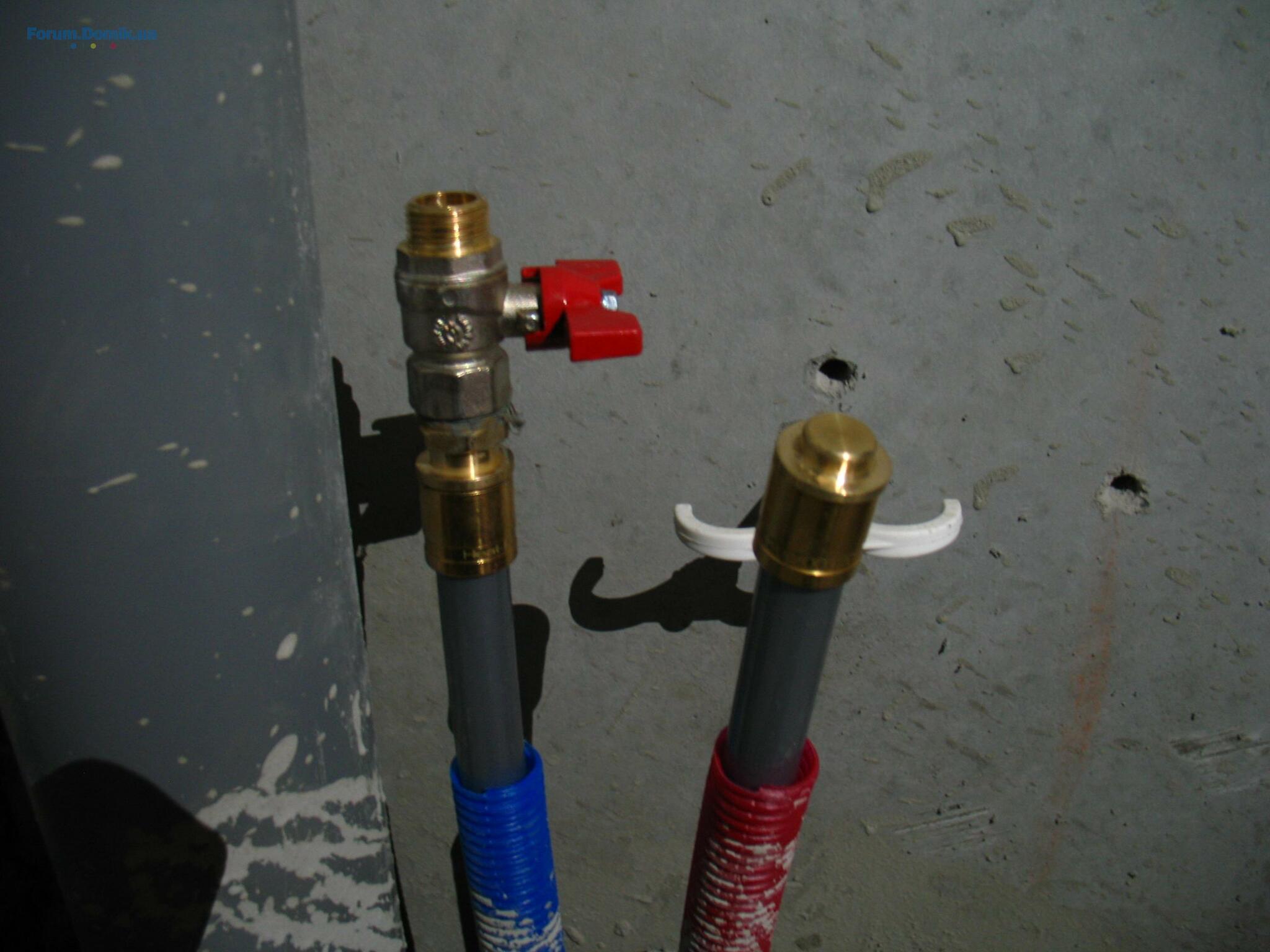Одна из вводных труб была с краном, остальные с заглушками.