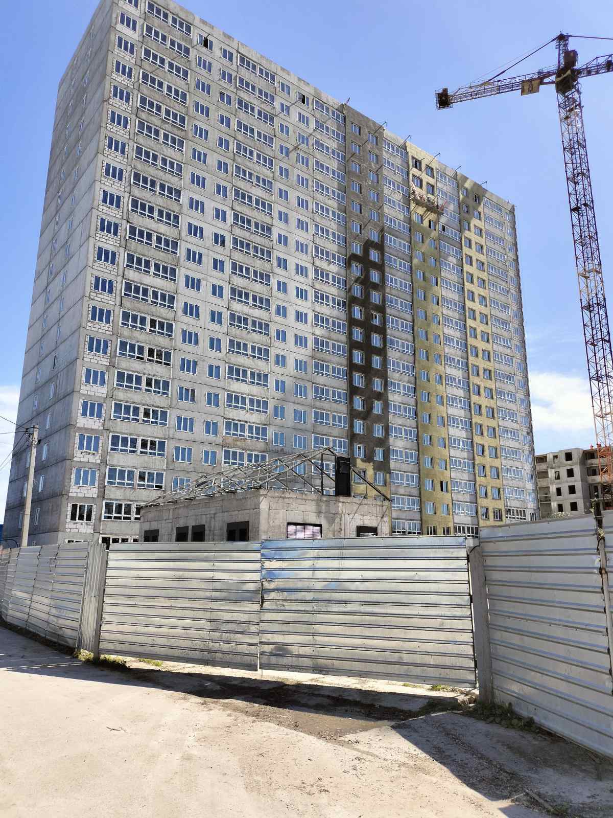 Будівництво відновлено, на сьогодення продовжують монтаж вікон.