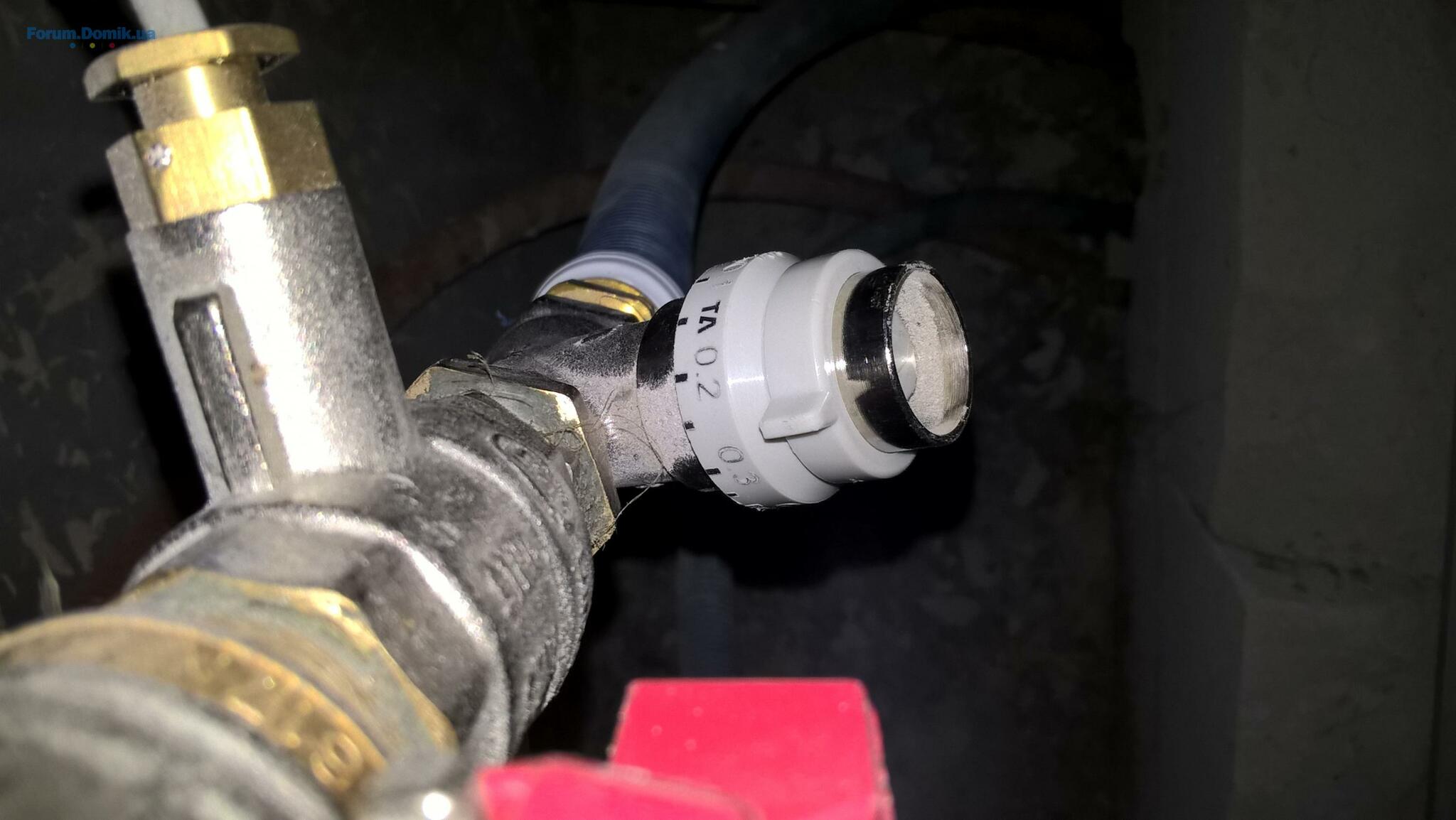 В шкуфу на обратке еще какой-то непонятный регулятор стоит. При запуске у меня отопления он оказался в положении, при которм батареи не грели вообще. Потом Александр его крутанул - и заработало. Что это за регулятор - пока руки не дошли разобраться. Фото прилагаю, возможно кто-то опознает сей девайс.