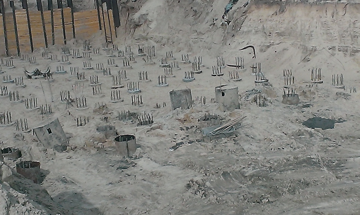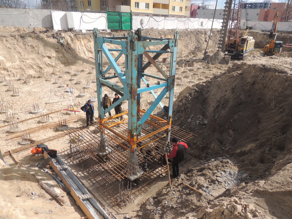 Вбито 175 свай, устройство фундаментной плиты под башенный кран, благоустройство прилегающей территории (монтаж бордюра).