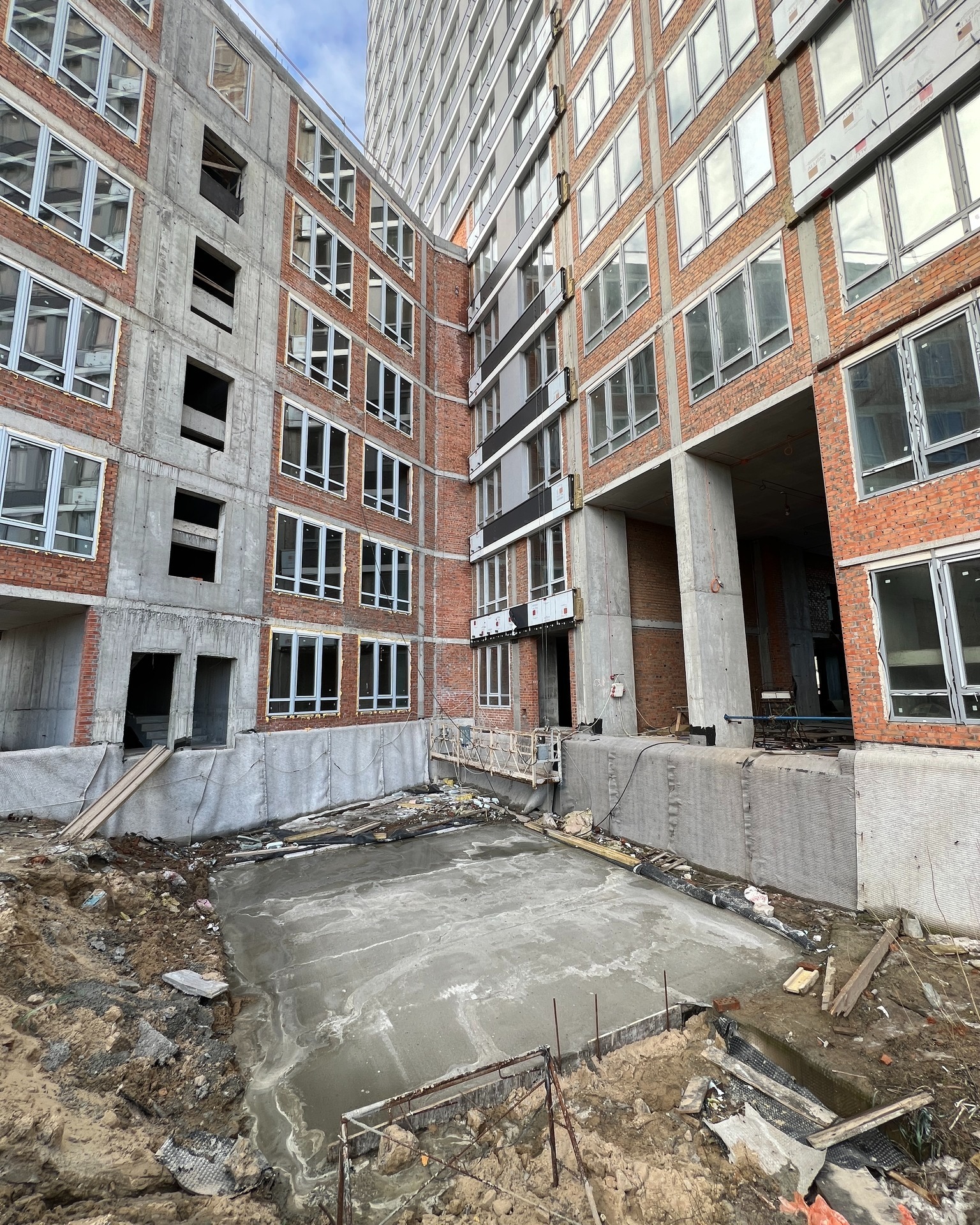 Якість: Попри затримку, візуально те, що вже зроблено (фасади, вікна), виглядає якісно та відповідає заявленому бізнес-класу. Об'єкт не перетворився на «панельну дешевизну».