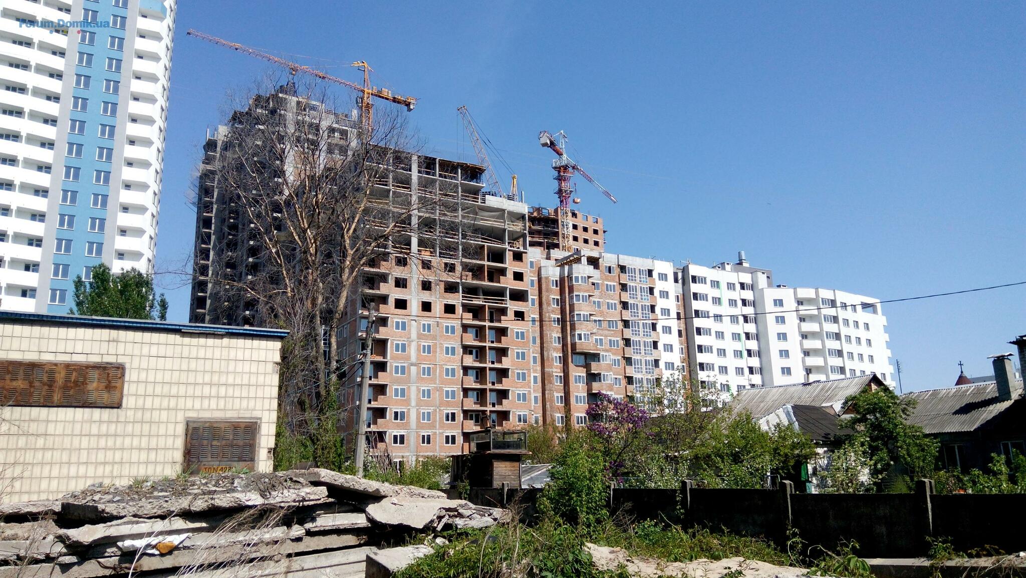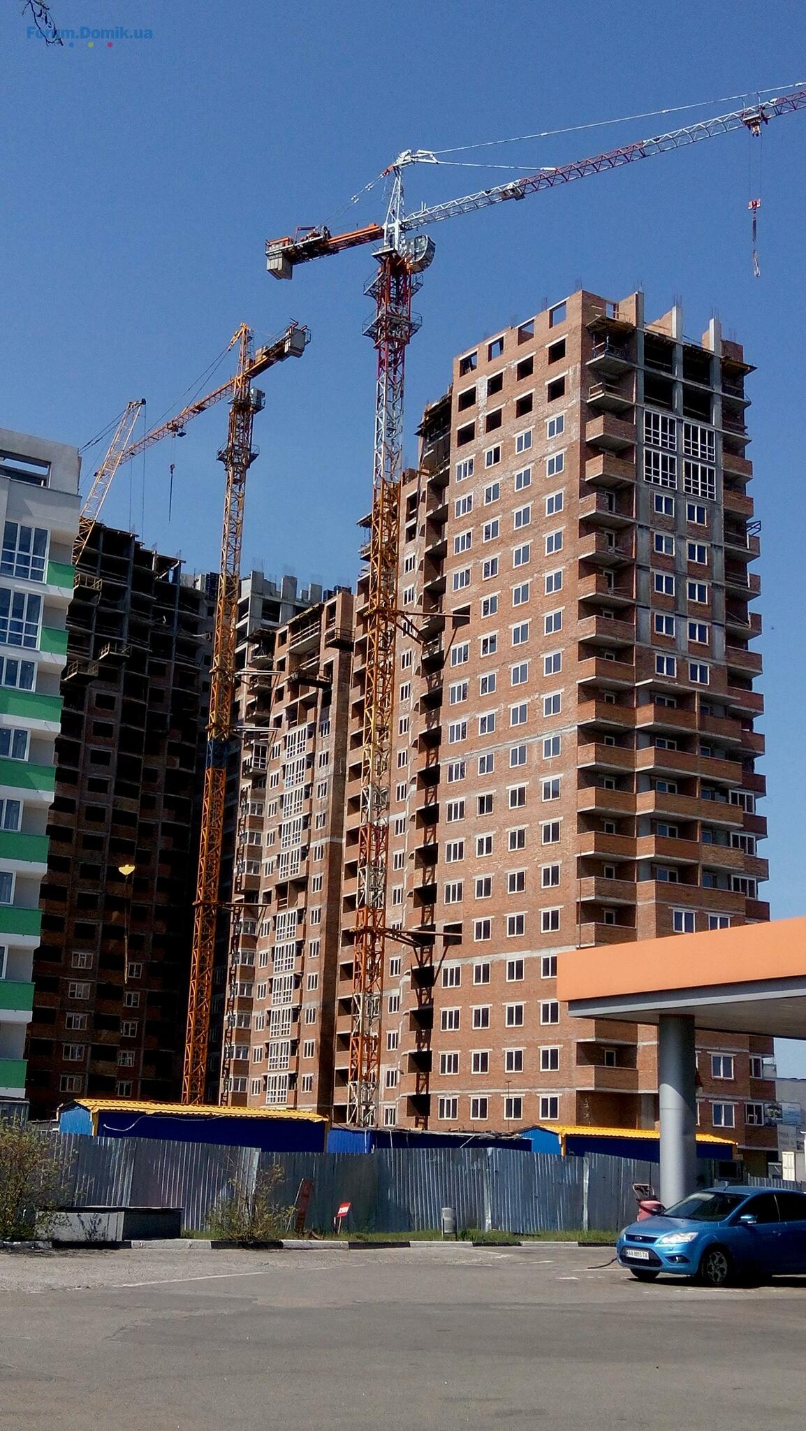 Несколько свежих фото строительства. Во время съемки строительные и отделочные работы велись на всех секциях, работали все три крана.