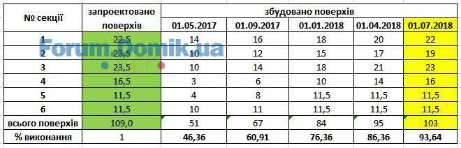 В моїй другій секції зараз 19 поверх будують, одже залишилось 4.5 поверхи не рахуючи 19й який ще не перекрили (тобто лишилаось приблизно 5 поверхів)