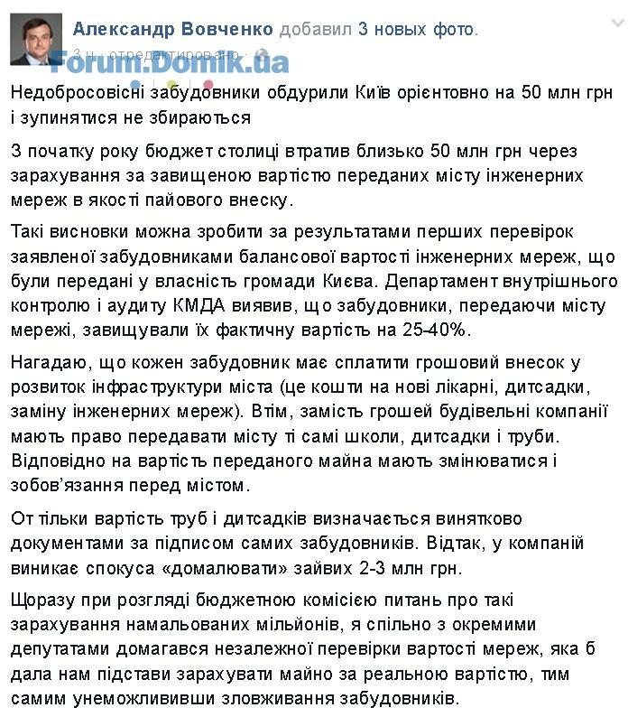 Цитата "Adrenaline":Аудит балансовой стоимости инженерных сетей чиновники инициируют потому, что есть прецеденты существенного завышения их стоимости самими застройщиками. Вот свежий пост из фейсбука от депутата - участника бюджетной комиссии.