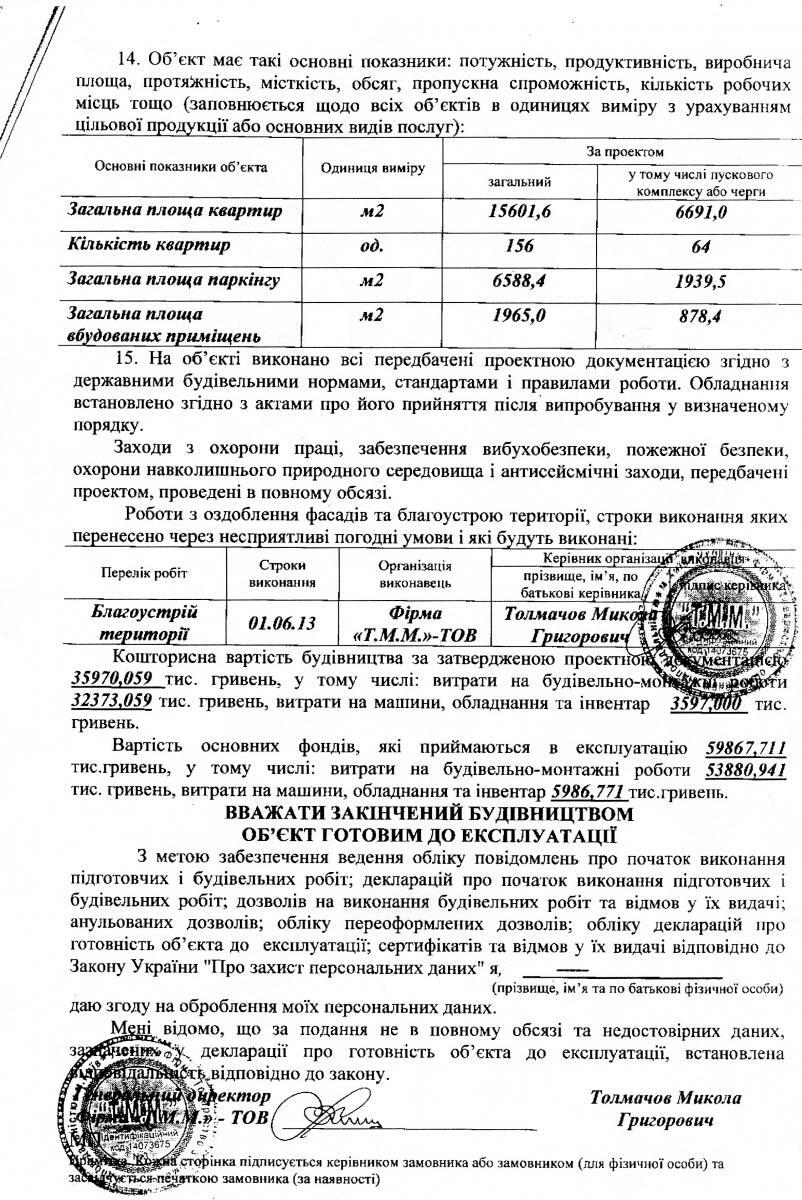 Компания "ТММ" ввела в эксплуатацию дом N2 жилого комплекса бизнес-класса "Green Town" на ул. Ахсарова в Харькове. Декларация о готовности объекта к эксплуатации зарегистрирована Инспекцией ГАСК в Харьковской области N ХК 143130450174 от 19.02.2013.