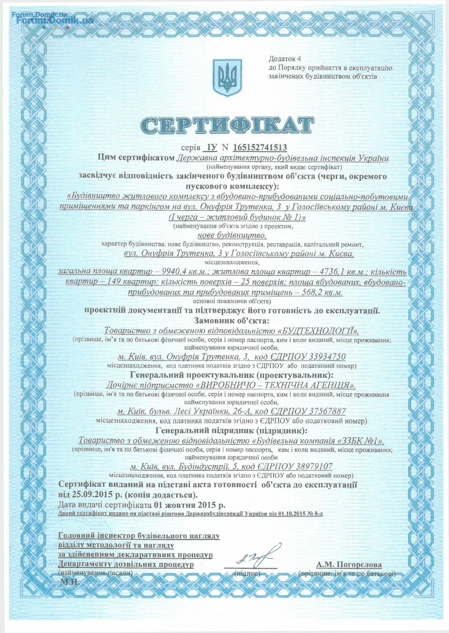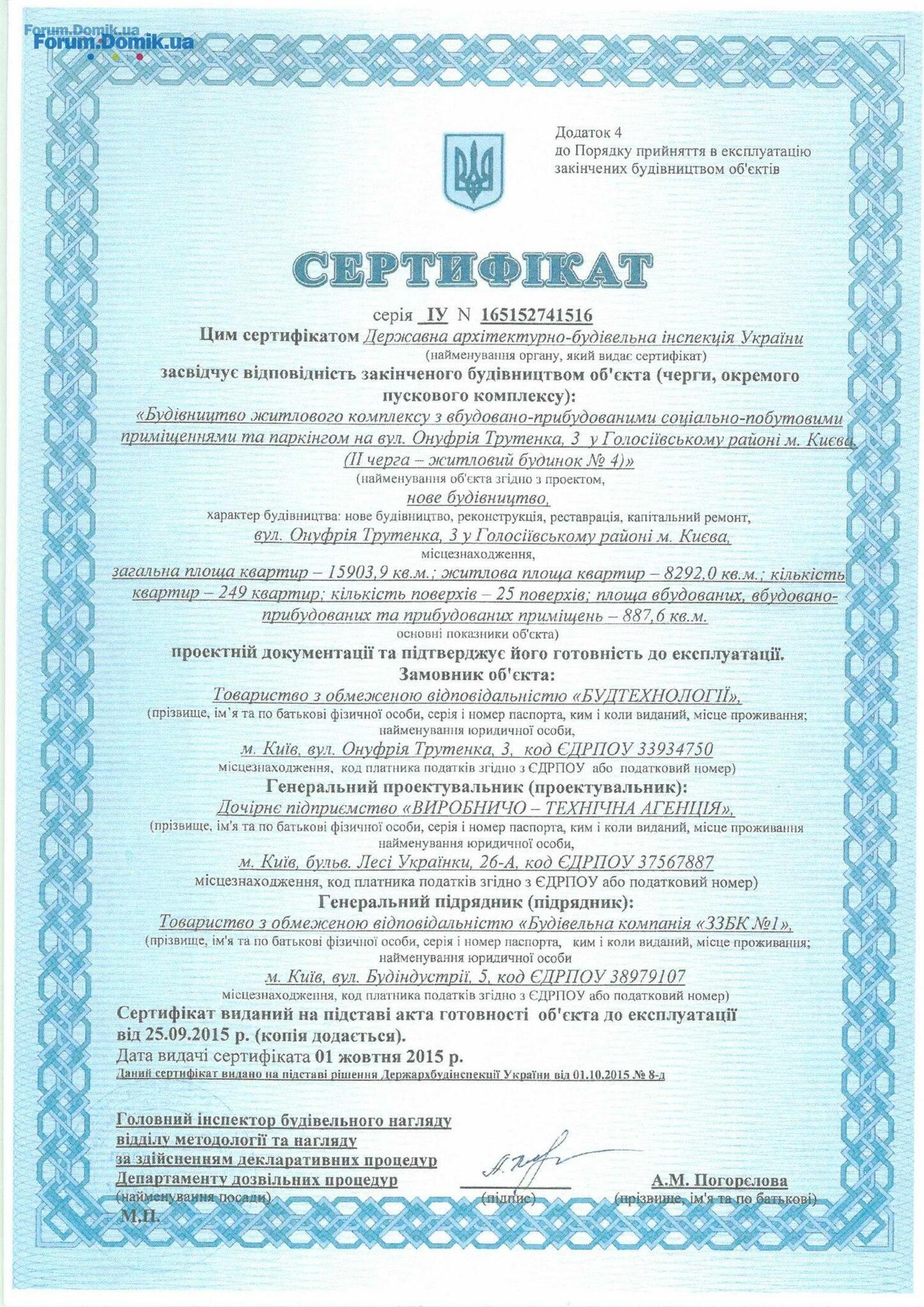 Цитата " Jarek":Народ, не могу найти на сайте Державної архітектурно-будівельної інспекції України сертификаты № 165152741513, № 165152741516? И дата в них 1 октября 2015 года, а ввод в эксплуатацию намечен на 31 октября? И печать не видна? Не липа ли эти сертификаты?