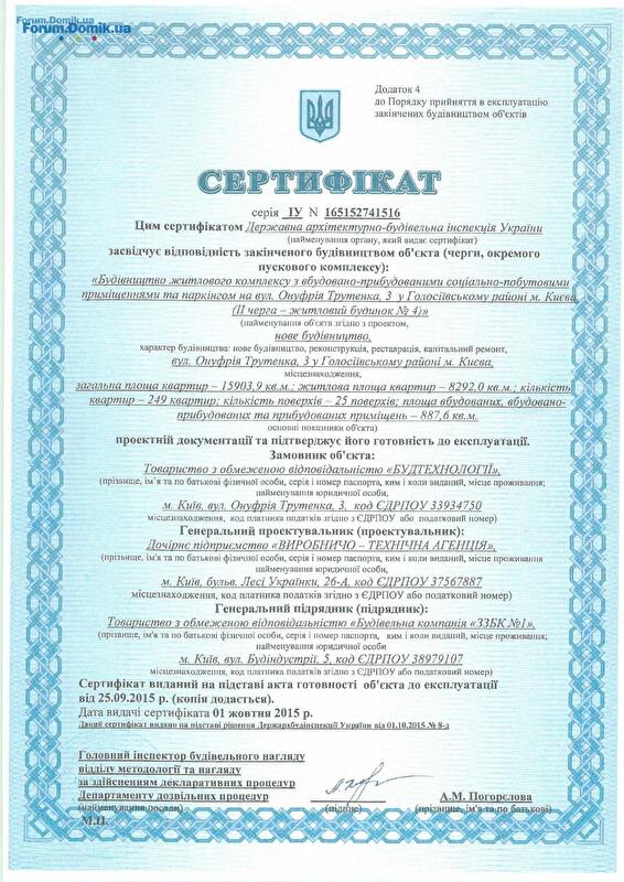 ООО «Будтехнологии» выполнили свое обещание перед инвесторами и сдали в эксплуатацию 1ю очередь строительства Дом№1, Дом№4 жилого комплекса «Амурский», расположенный по адресу ул. О.Трутенко,3 в Голосеевском районе Киева.