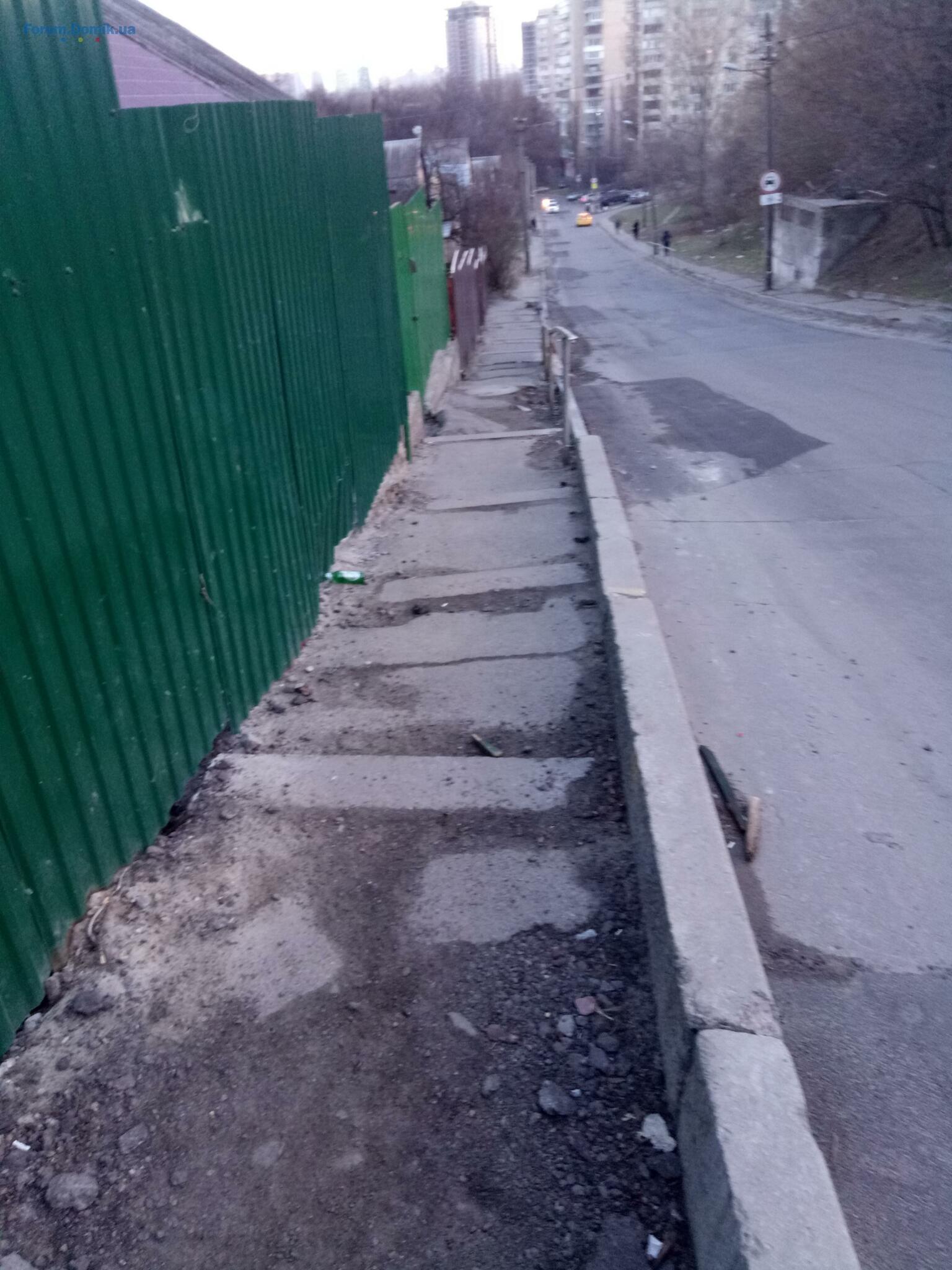 Можно идти не по дороге и не по грязи, а по другой стороне , там есть тротуар . Здесь было перерыто в связи с аварией , нужно сообщить в киевраду, чтоб сделали. Я позвоню и советую вам так же жил сделать