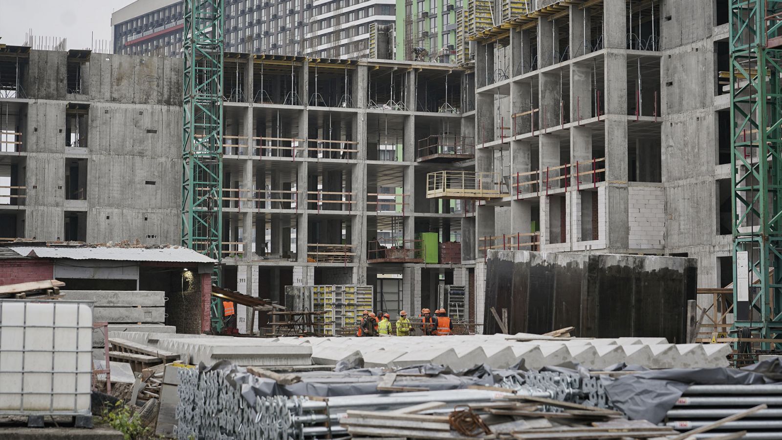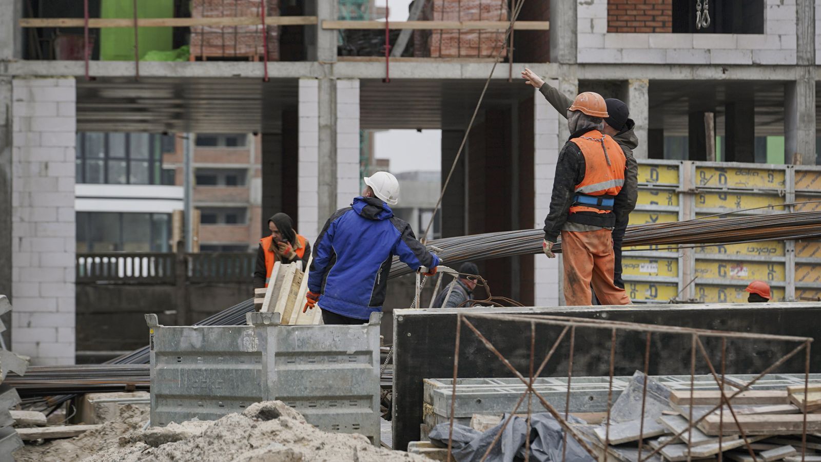 Будинок 1.1: Роботи йдуть на рівні 8-го поверху (моноліт), цегляна кладка стін — на рівні 4-го поверху.